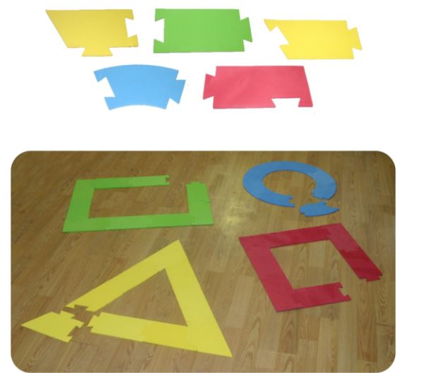 4 شکل هندسی از جنس فوم در رنگ های مختلف - دایره ، مربع ، مثلث ، مستطیل - پروش مهارت های حرکتی ، تحرک ، جهت یابی - تمرین های تعادلی
