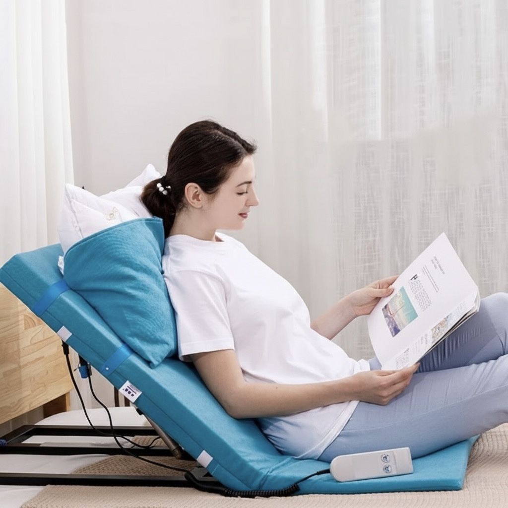 • قابلیت تنظیم شیب با کنترل از راه دور: اصلیترین ویژگی این وسیله، توانایی تنظیم زاویه تکیهگاه به صورت برقی و با استفاده از یک کنترل دستی است. این امکان به کاربر اجازه میدهد تا از حالت کاملاً خوابیده به حالت نیمه نشسته (و برعکس) تغییر وضعیت دهد.